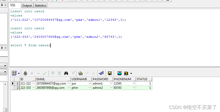 在做这个sql语句之前,先到数据库里面插入一些数据