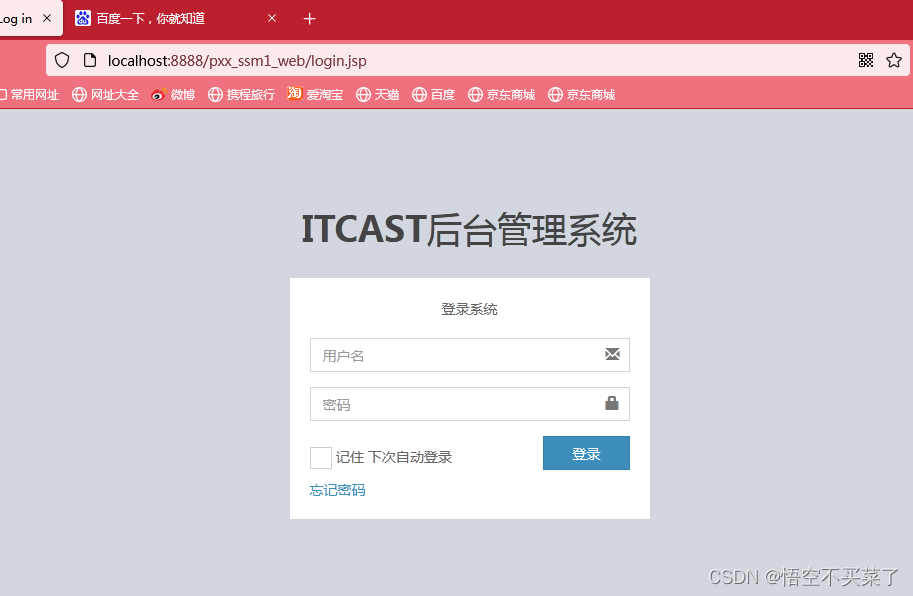 当服务器一启动,就会进入到我们登录页面,因为Spring-Security已经做了控制