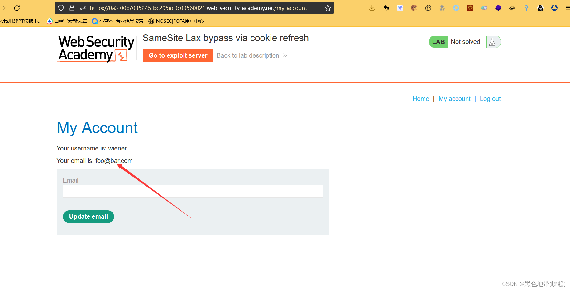 本实验的电子邮件更改功能易受CSRF攻击。它尝试使用不安全的"双重提交" CSRF预防技术。