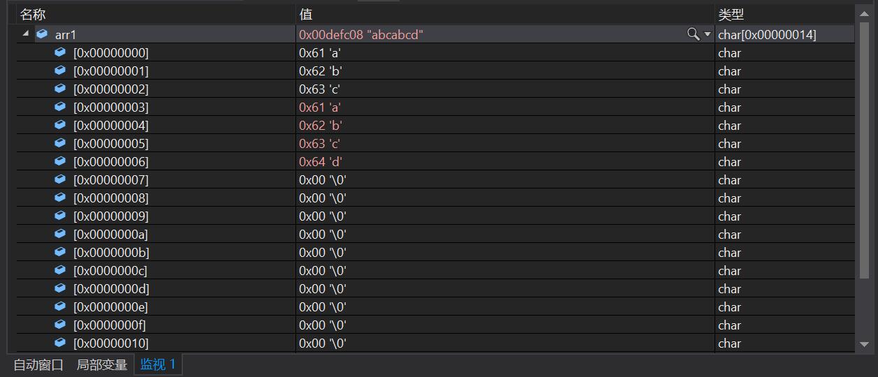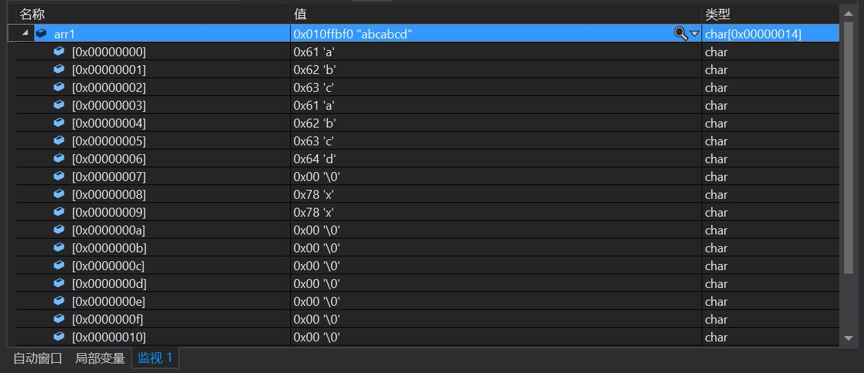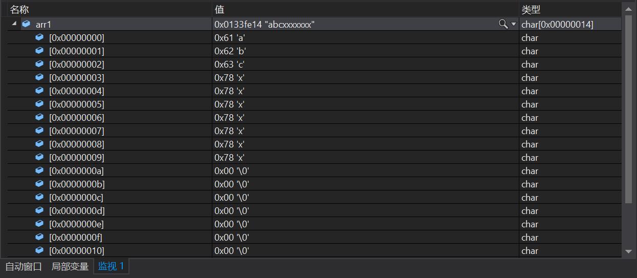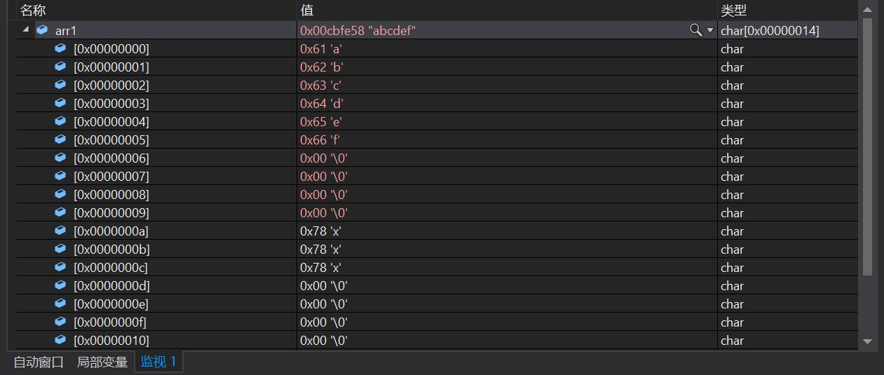 对arr1进行监视,会发现strncpy不会在拷贝后给字符串加上\0。