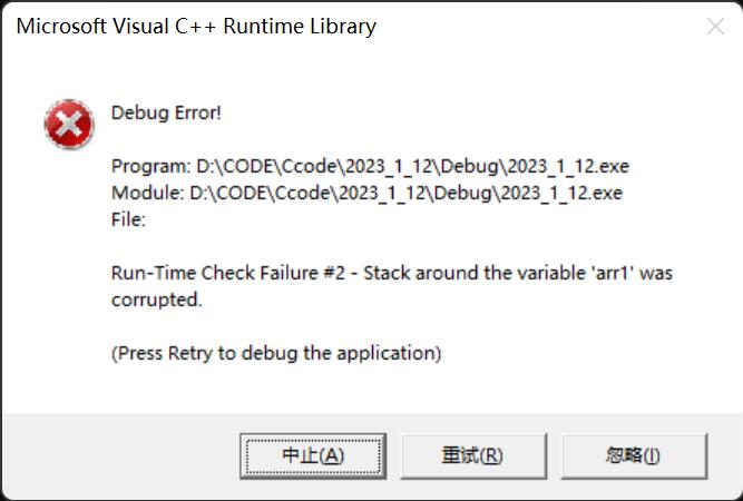 {char arr1[5] = { 0 };char arr2[] = "hello world";strcpy(arr1, arr2);printf("%s\n", arr1);return 0;