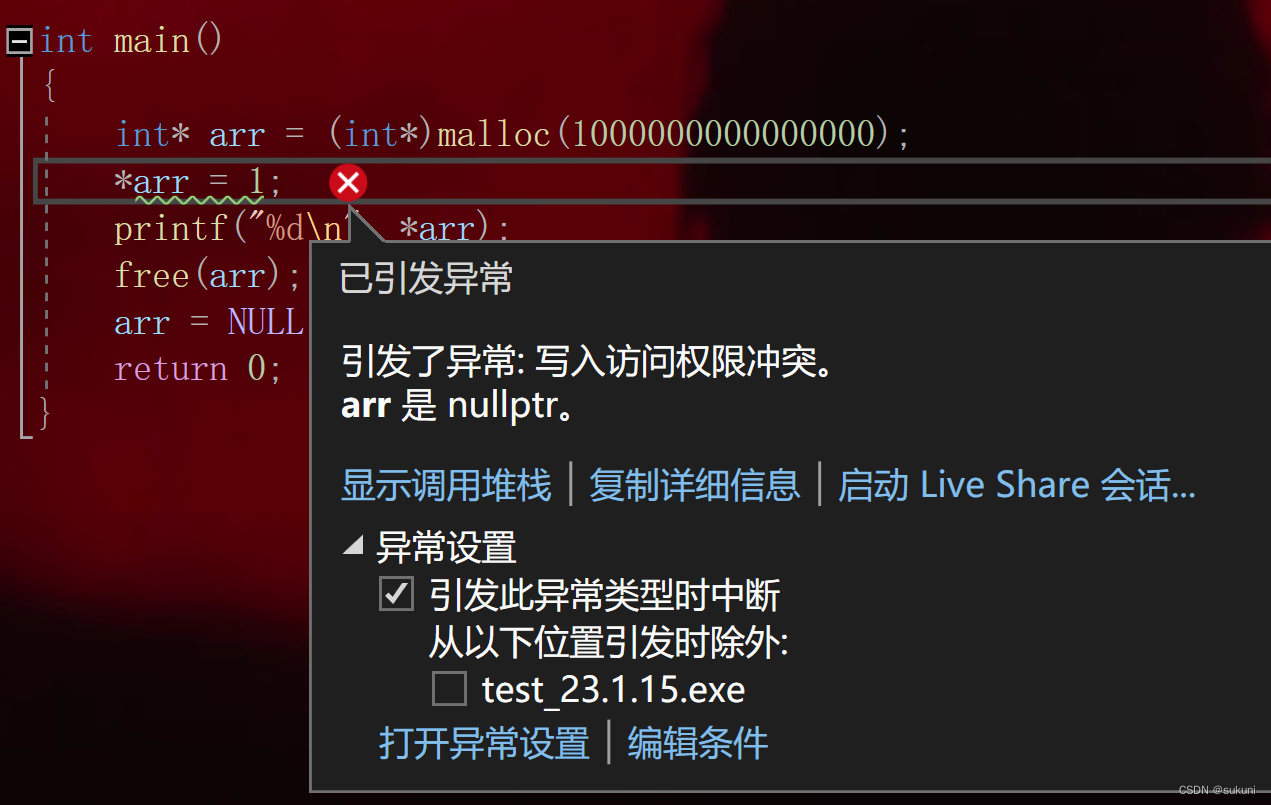 有时候由于我们未对动态开辟的内存检查,而导致我们后面使用了空指针;