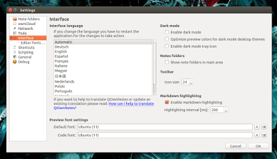 QOwnNotes 的亮点就是它集成了 ownCloud 云服务(当然是可选的)。在 ownCloud 上用这款 APP,你就可以在网路上记录和搜索你的笔记,也可以在移动设备上使用。不久以后,用你的 ownCloud 账户连接上 QOwnNotes,你就可以从你 ownCloud 服务器上分享笔记和查看或恢复之前版本记录的笔记(或者丢到垃圾箱的笔记)。因为笔记被保存为纯文本,它们可以在不同的设备之间通过云存储服务进行同步,比如 Dropbox,Google Drive 等等,但是在这些应用中不能完全替代 ownCloud 的作用。