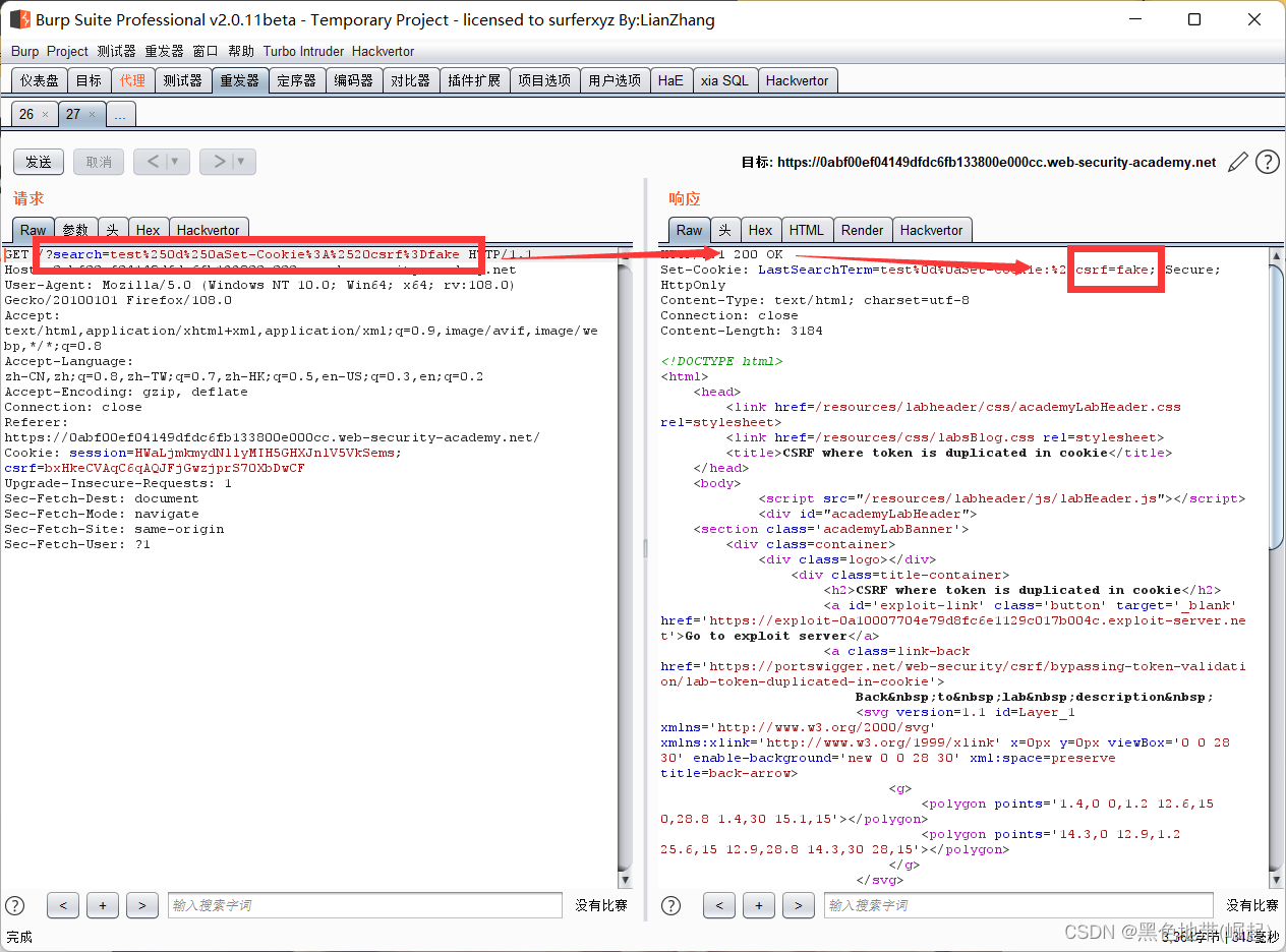 实验6:标记在Cookie中重复的CSRF