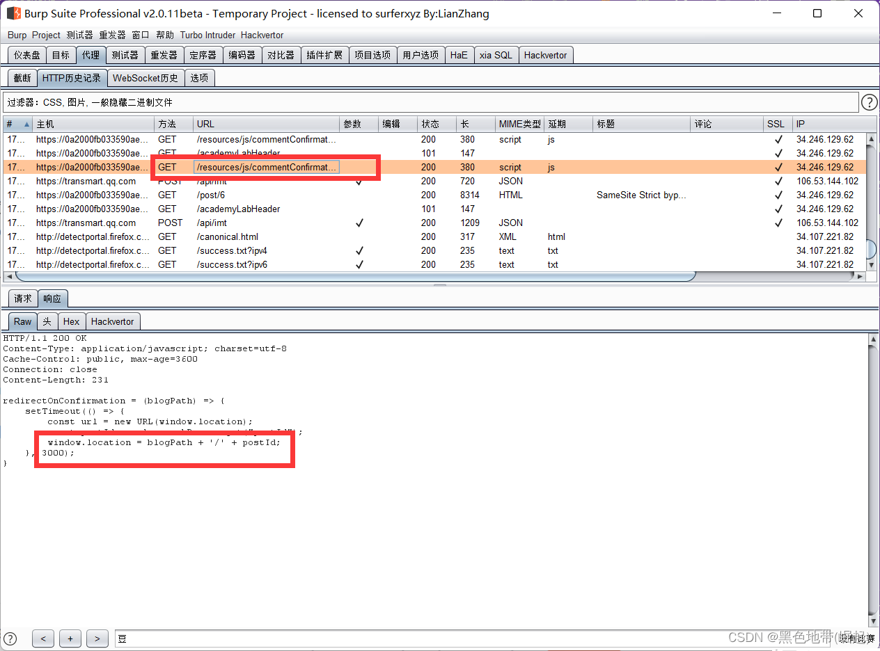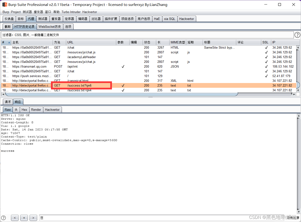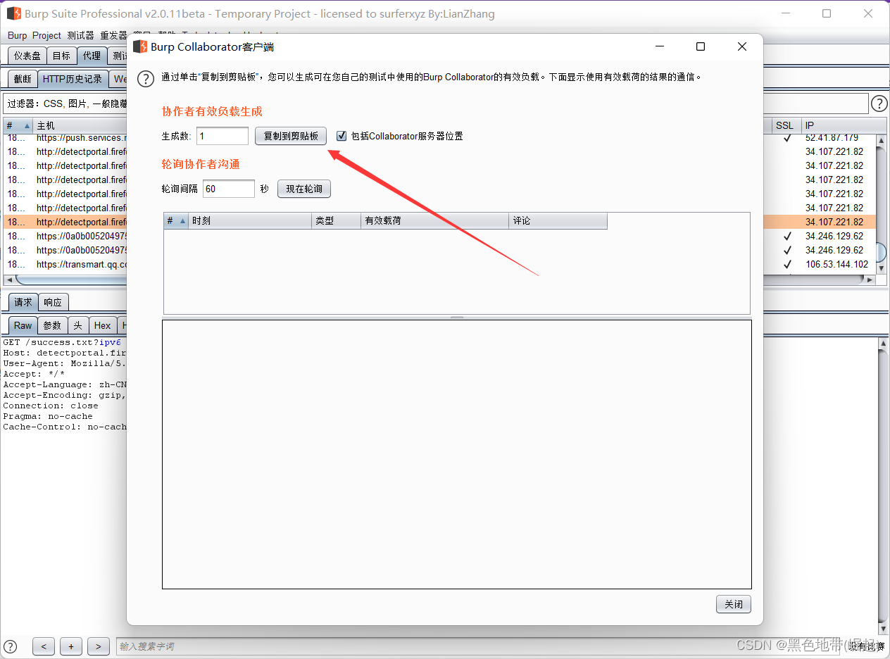 HTTP代理历史记录中查找生成的请求