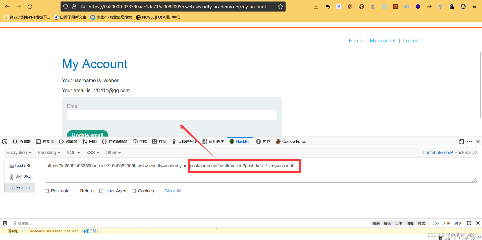 1、本实验的电子邮件更改功能易受CSRF攻击。它试图阻止跨域请求,但有一个不安全的后备。