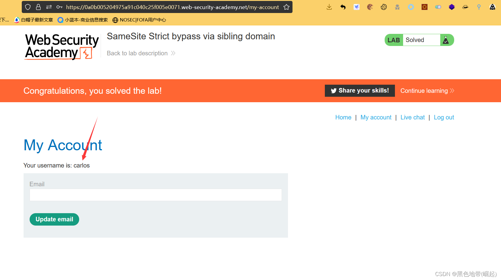 实验9:通过兄弟域严格绕过SameSite