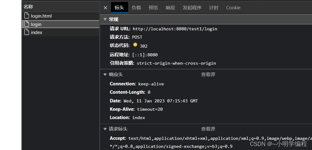 public class LoginServlet extends HttpServlet {@Overrideprotected void doPost(HttpServletRequest req, HttpServletResponse resp) throws ServletException, IOException {//处理用户请求String username = req.getParameter("username");String password = req.getParameter("password");//判定用户名和密码,这里我们就简单的用123456,666666当作用户名和密码if ("123456".equals(username) && "666666".equals(password)) {//登录成功//创建会话HttpSession httpSession = req.getSession(true);//向会话中存入键值对httpSession.setAttribute("username",username);resp.sendRedirect("index");//重定向} else {//登录失败resp.getWriter().write("login failed!");}}