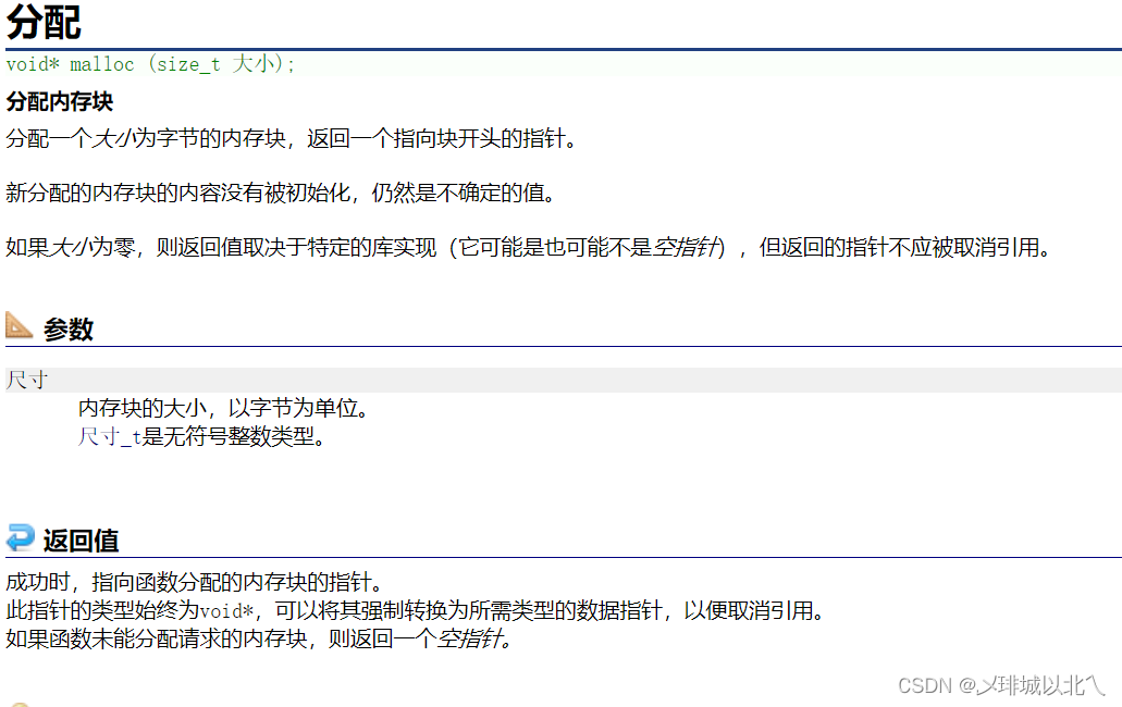 返回值的类型是 void* ,所以malloc函数并不知道开辟空间的类型,具体在使用的时候使用者自己