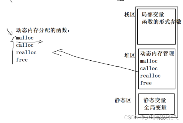 2. 堆区(heap):一般由程序员分配释放, 若程序员不释放,程序结束时可能由OS回收 。分