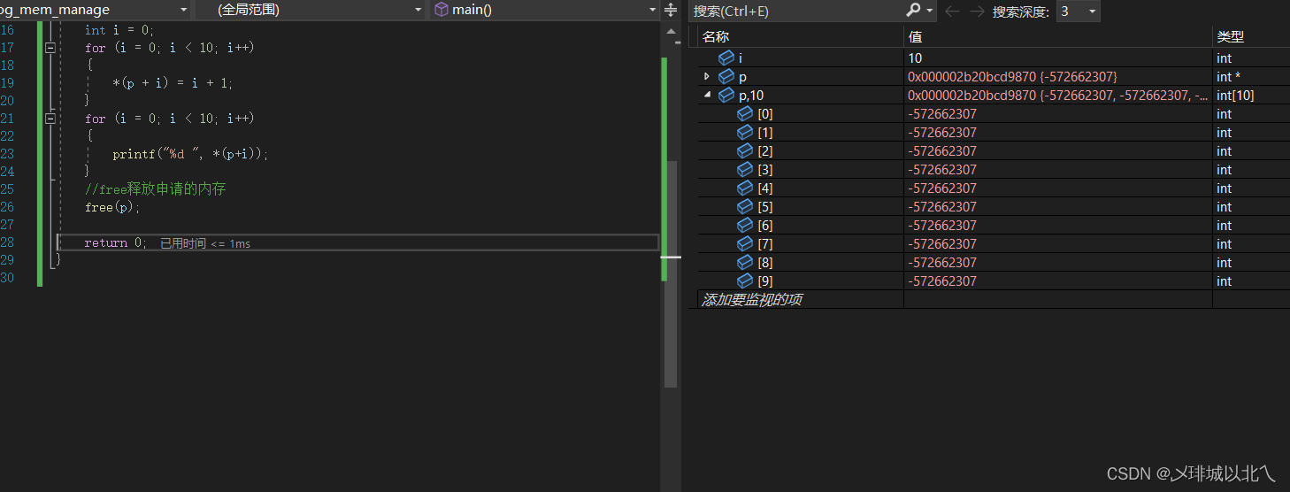 同时,上面用malloc申请了一块空间,但是函数内没有释放,函数销毁后,p也销毁,这块空间就会内存泄漏。记得malloc要与free搭配使用。