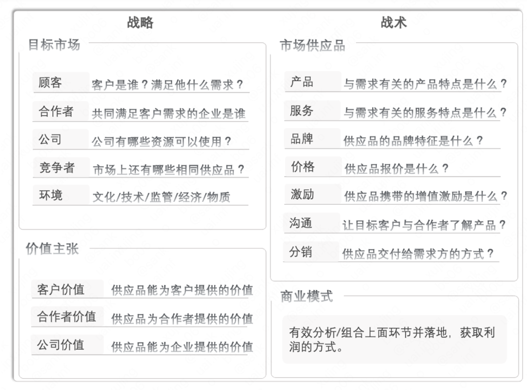战略主要是完成价值主张,前面已经详细分析过,请关注“价值”环节。