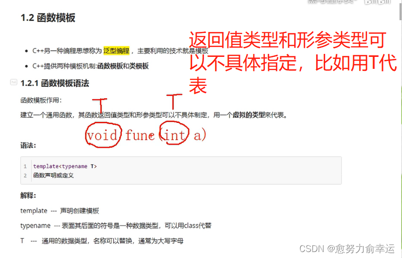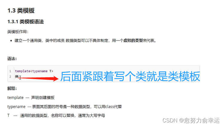 //typename表明后面的符号是一种通用的数据类型,T名称可以替换,一般都用T表示