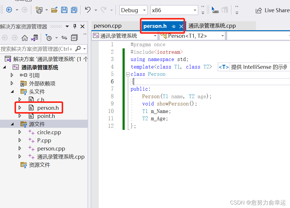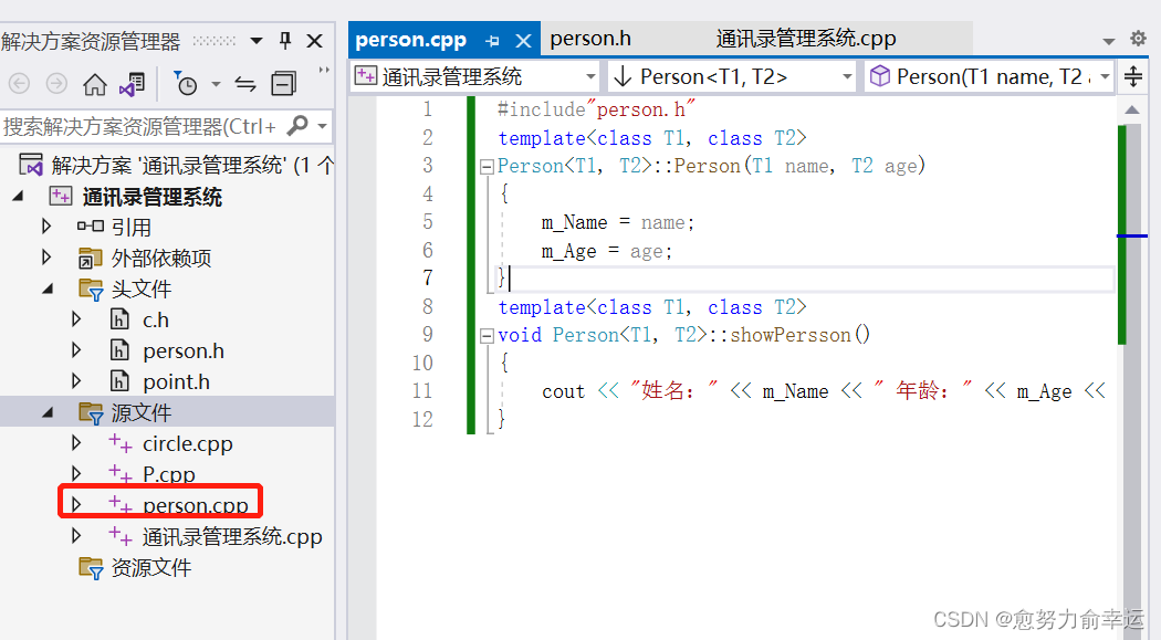 public:Person(T1 name, T2 age);void showPersson();T1 m_Name;T2 m_Age;