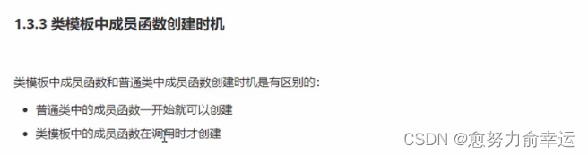 public:T obj;//类模板中的成员函数void func1(){obj.showPerson1();}void func2(){obj.showPerson2();}//可以编译成功,这俩个成员函数只要不调用就不会创建,为什么不创建?//因为没办法确定obj的类型