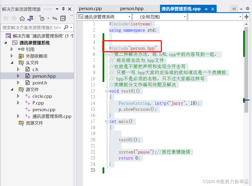 //当写#include"person.h"时,编译器看到.h中类里面的
