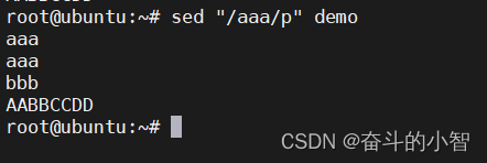 [root@along ~]# sed -n "3w/root/demo3" demo #保存第3行的内容到demo3文件中