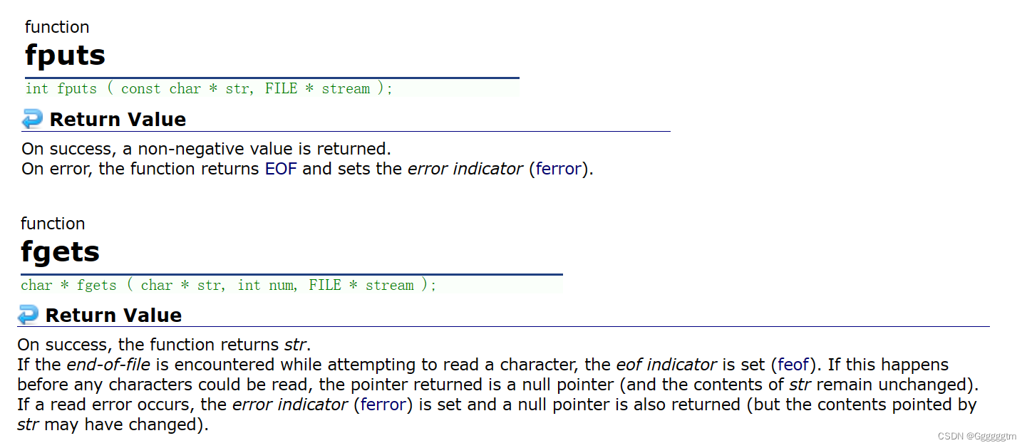 fgets、fputs函数与fgetc、fputc函数大同小题,但是又有所不同。fgets、fputs函数是输入和输出一行。我们先看fgets、fputs函数的参数和返回值。