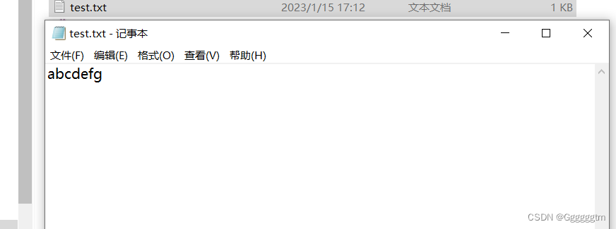 通过上面我们可以看出,该函数的参数是一个文件指针,该文件指针指向的是我们要读取字符的文件。当读取成功时返回值为该字符的ASCLL码值,读取失败或者读到文件末尾返回EOF。我们在该文件路径底下已经有一个文件,该文件及内容如下图所示: