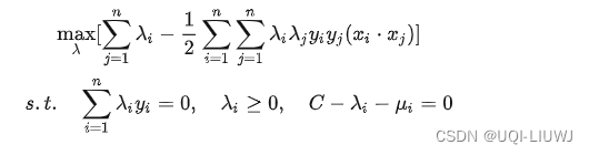 同样地, 之后利用SMO(Sequential Minimal Optimization) 算法求解各个λ,然后通过λ求W