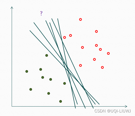 但是,问题来了,如果有很多的超平面可以分割这两类点,那么应该选择哪一条呢