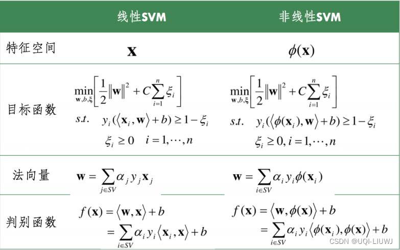 可以看到与线性 SVM 唯一的不同就是:之前的 (xi⋅xj) 变成了 (ϕ(xi)⋅ϕ(xj)) 。
