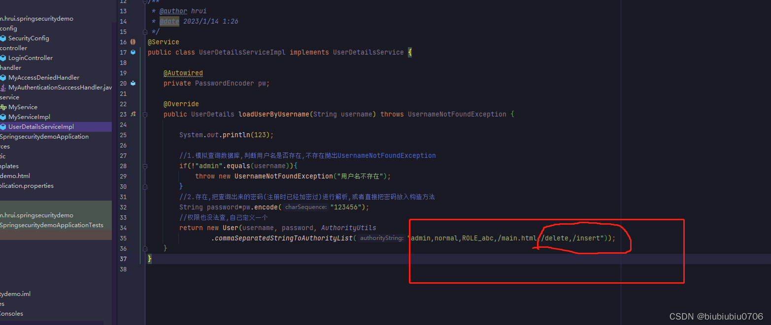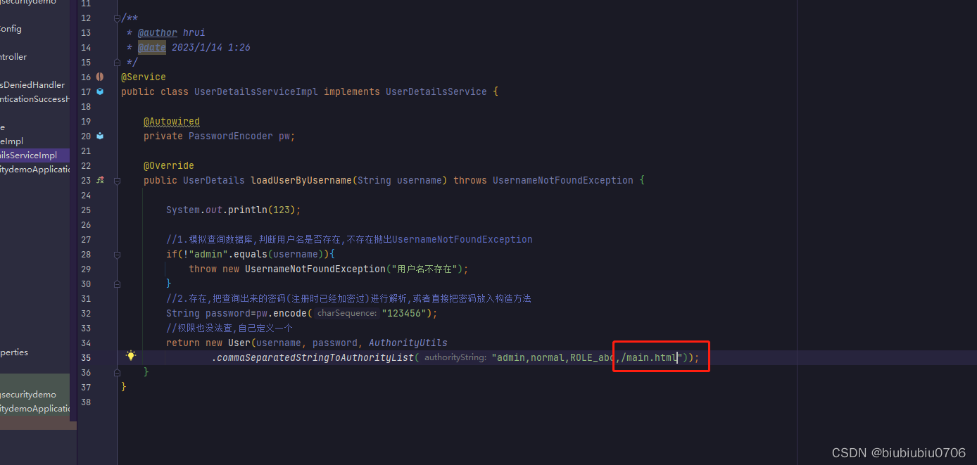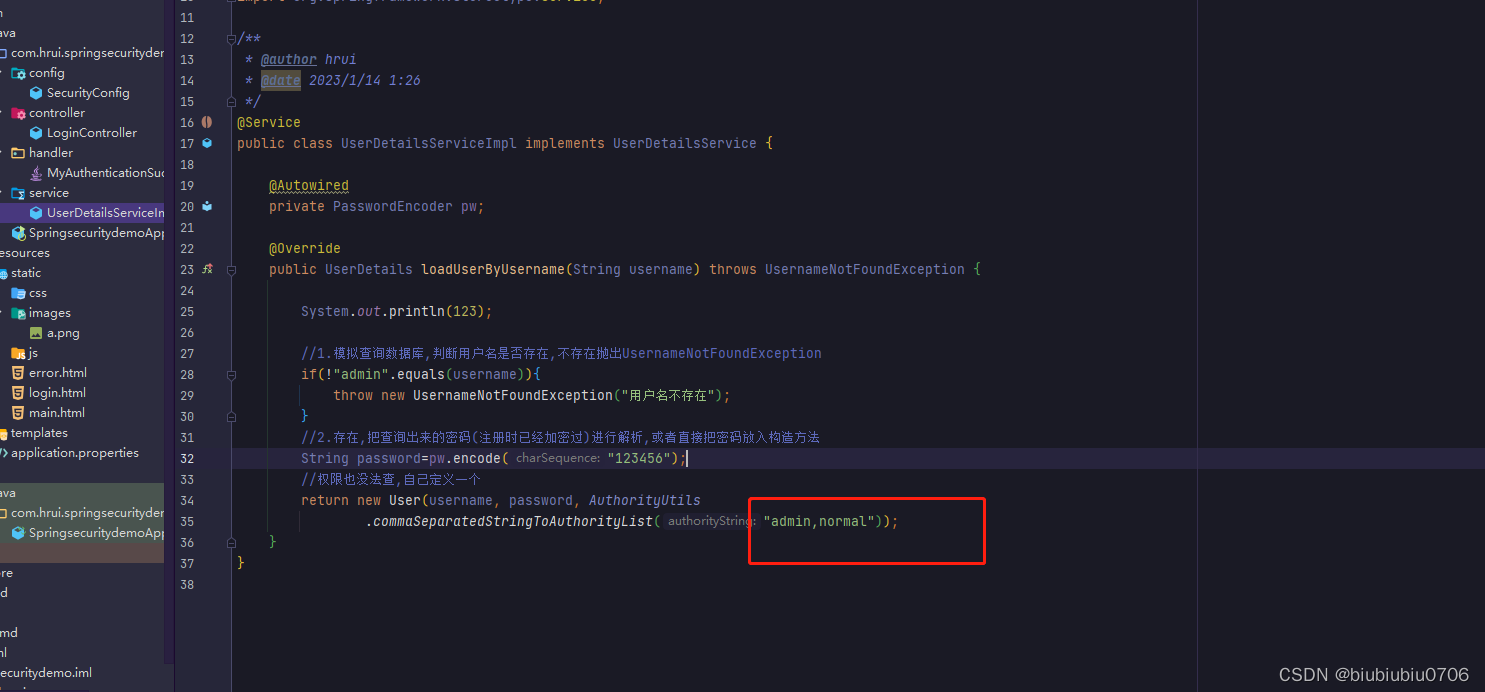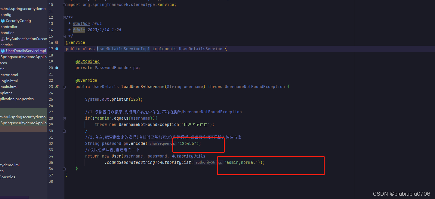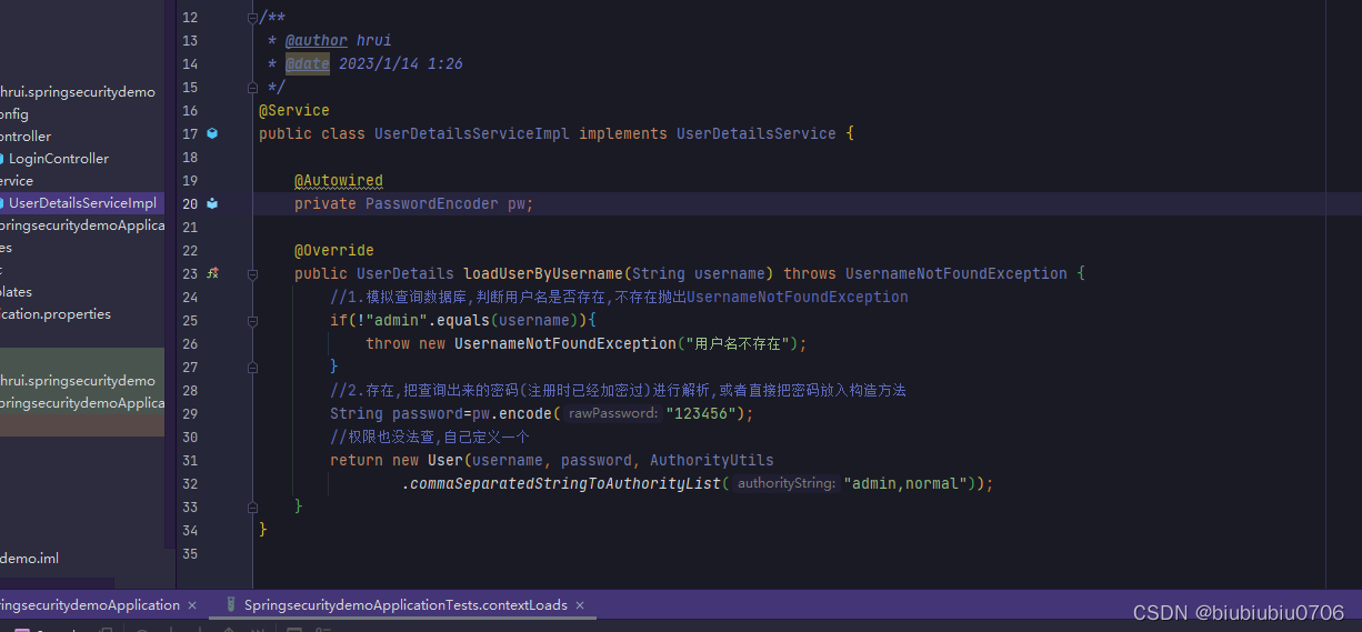 另外还要写个类实现UserDetailsService接口