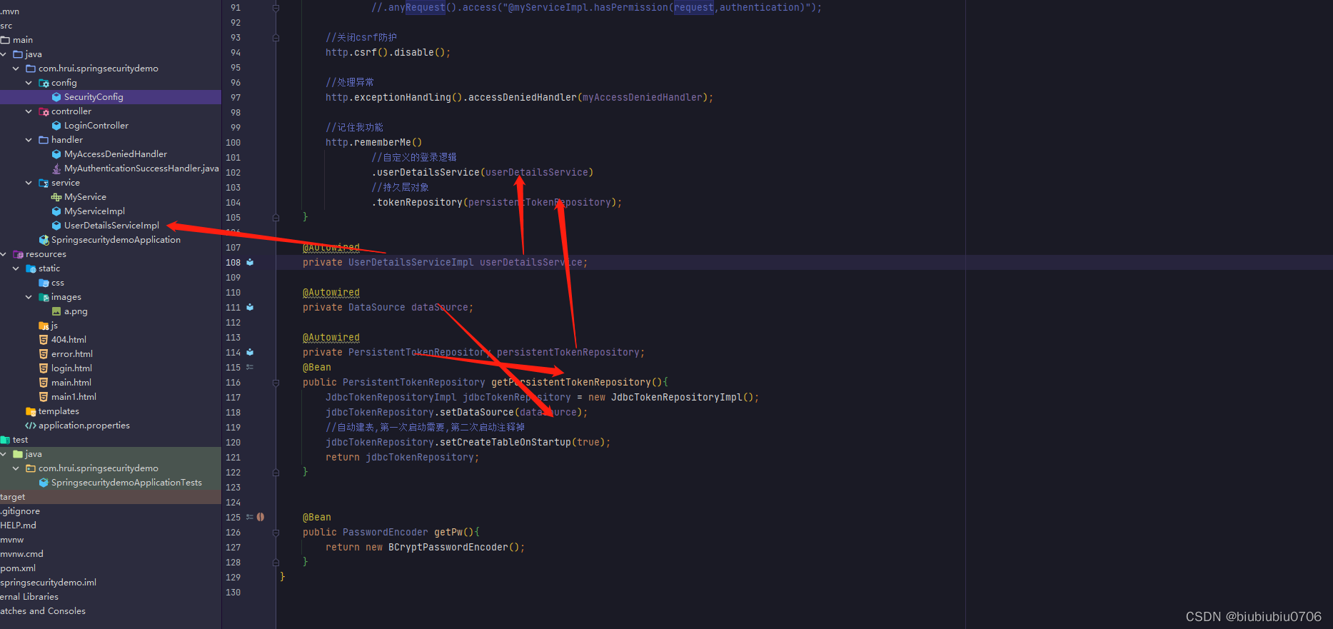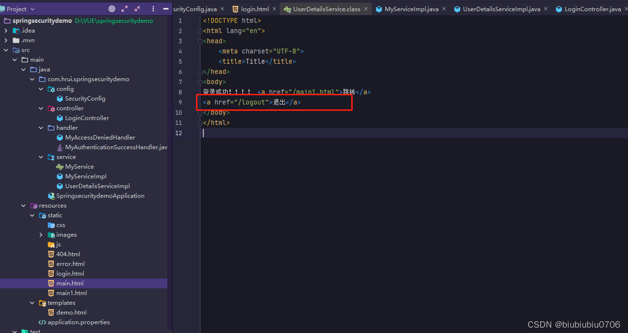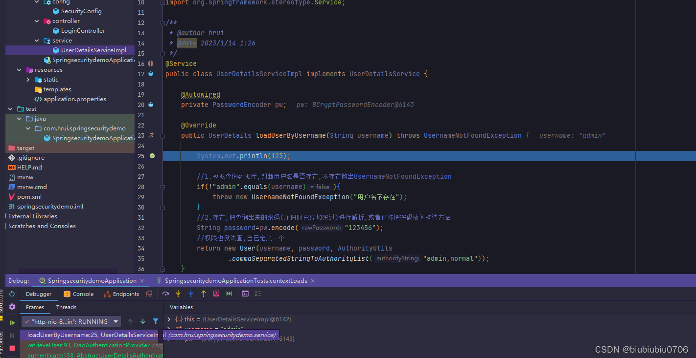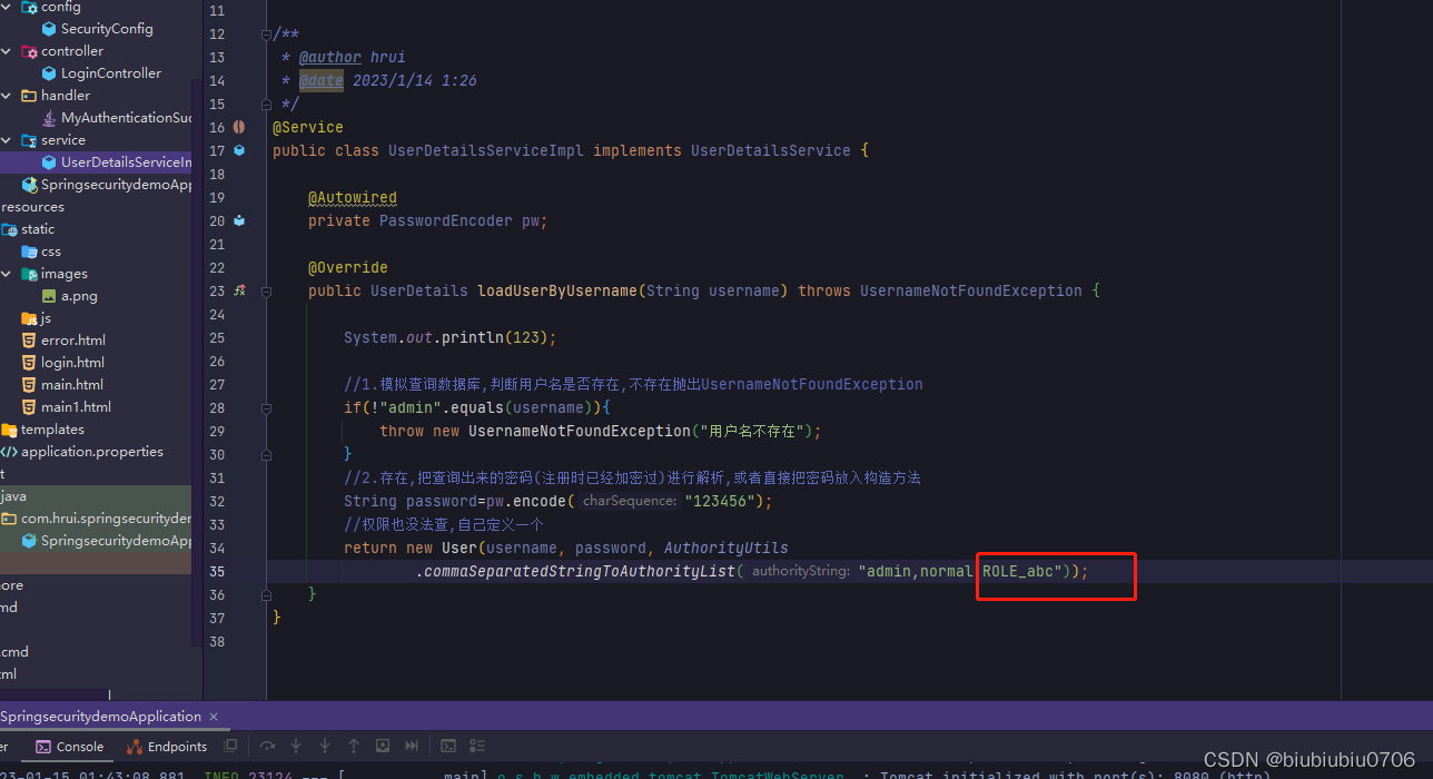 另外还要写个类实现UserDetailsService接口