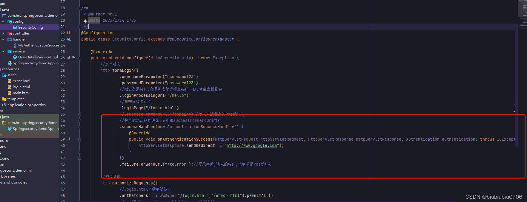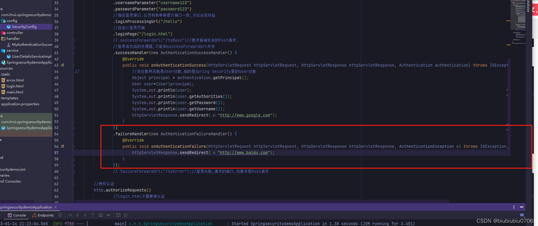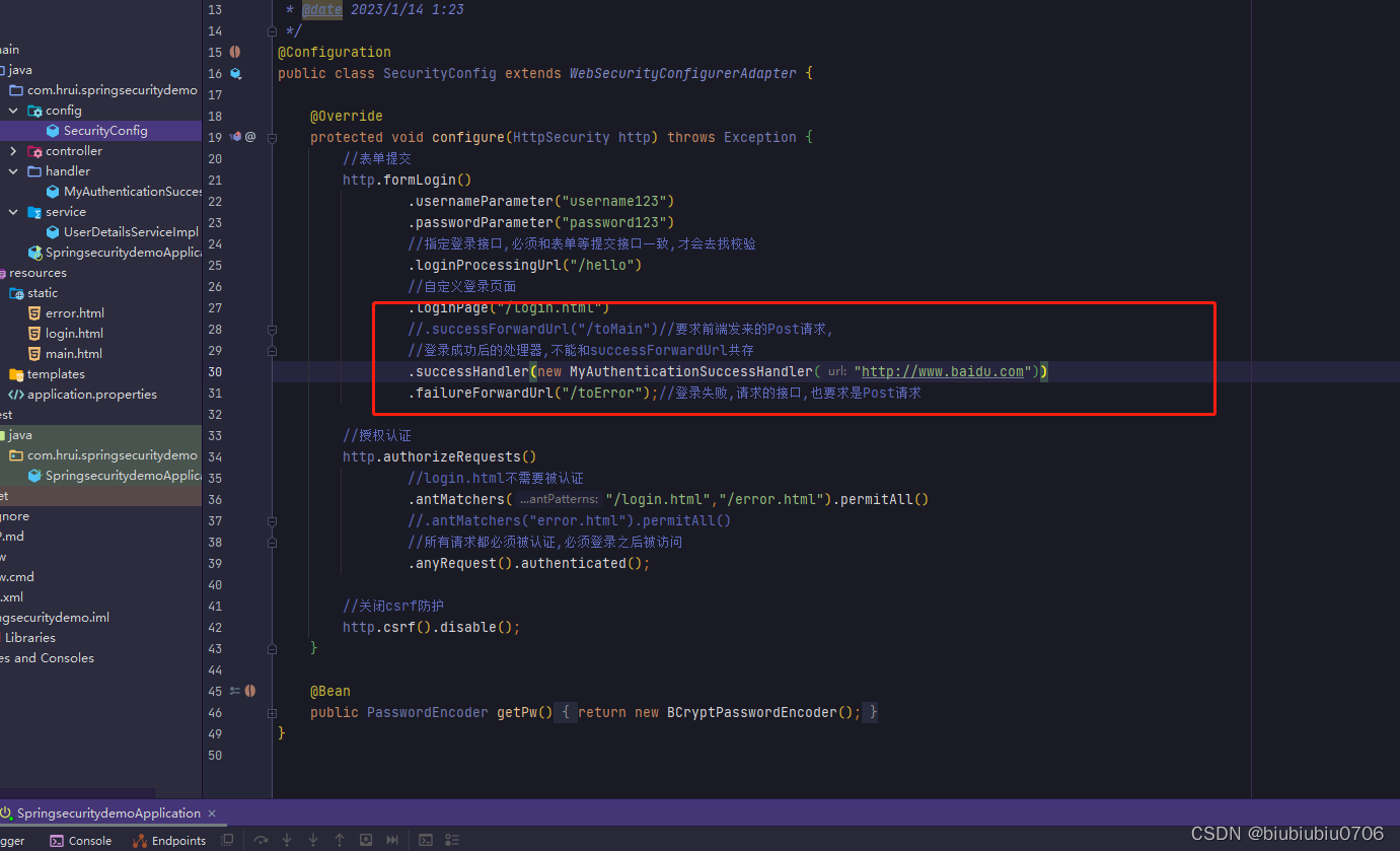 自定义登录成功处理器就这么回事,也是不能和failureForwardUrl共存的