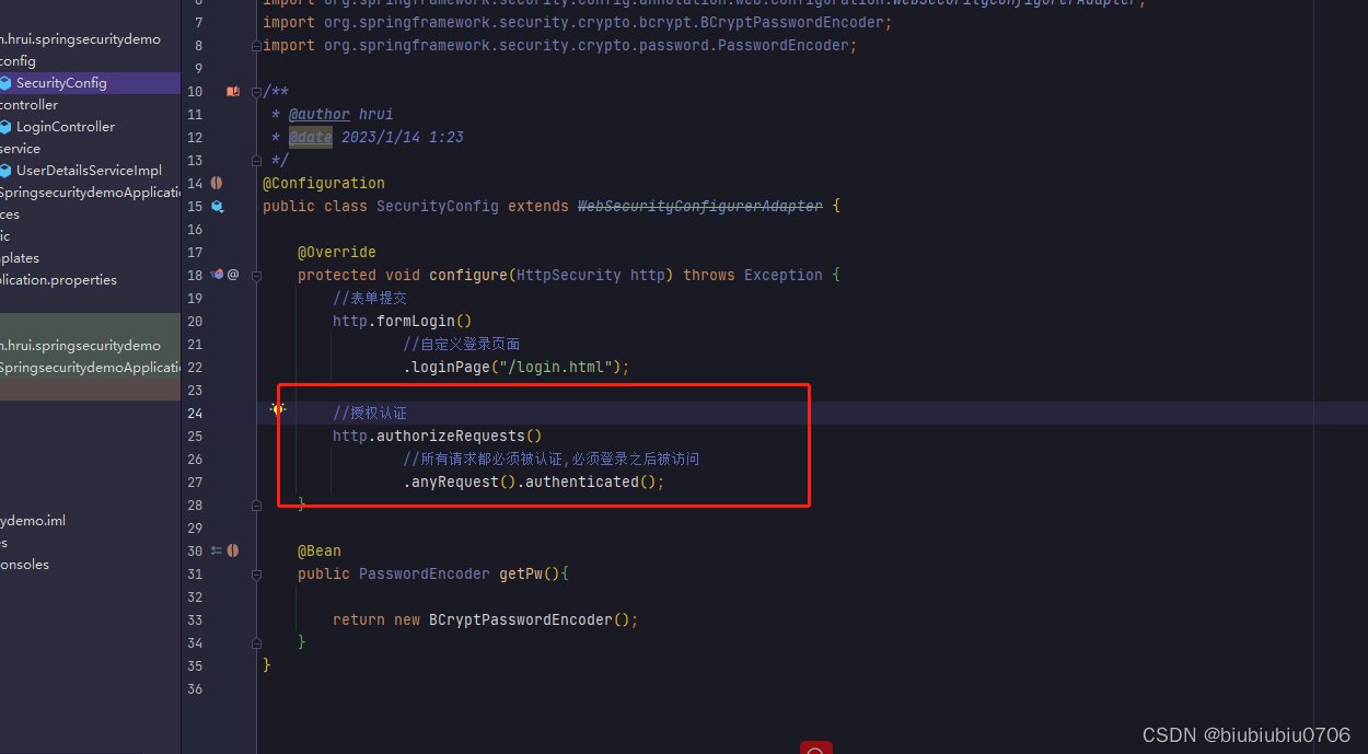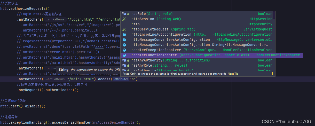 上面anyRequest就是所有请求都需要做什么事 一般都是.anyRequest().authenticated().即都需要被认证,即登录后可以访问