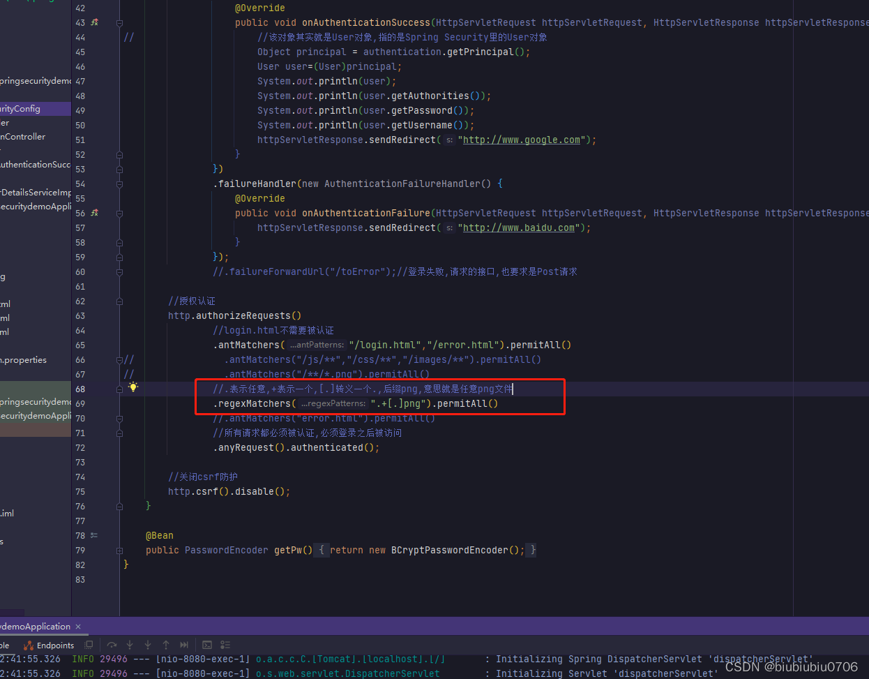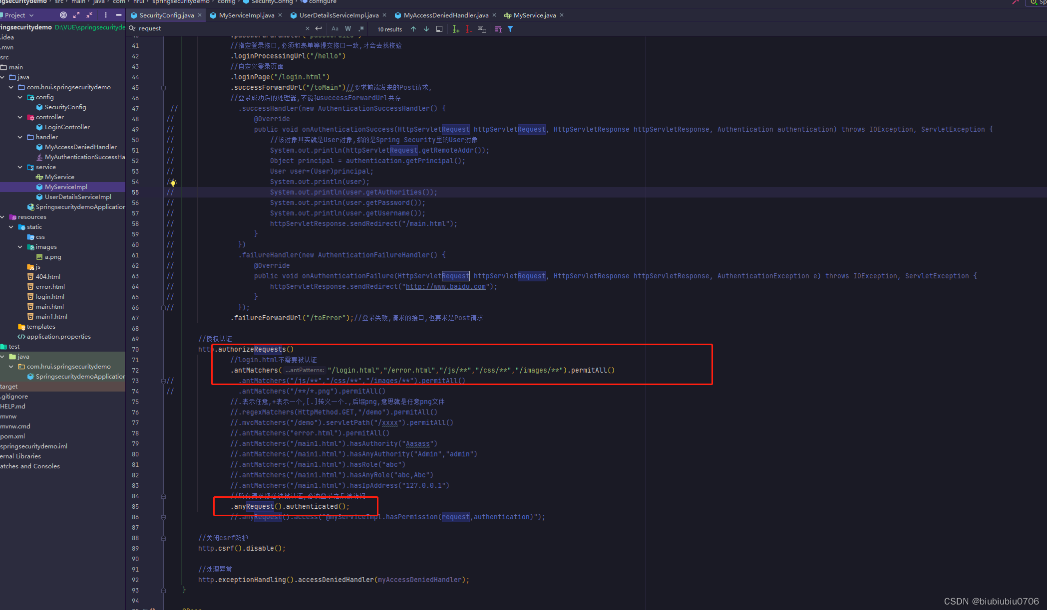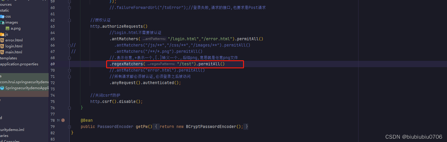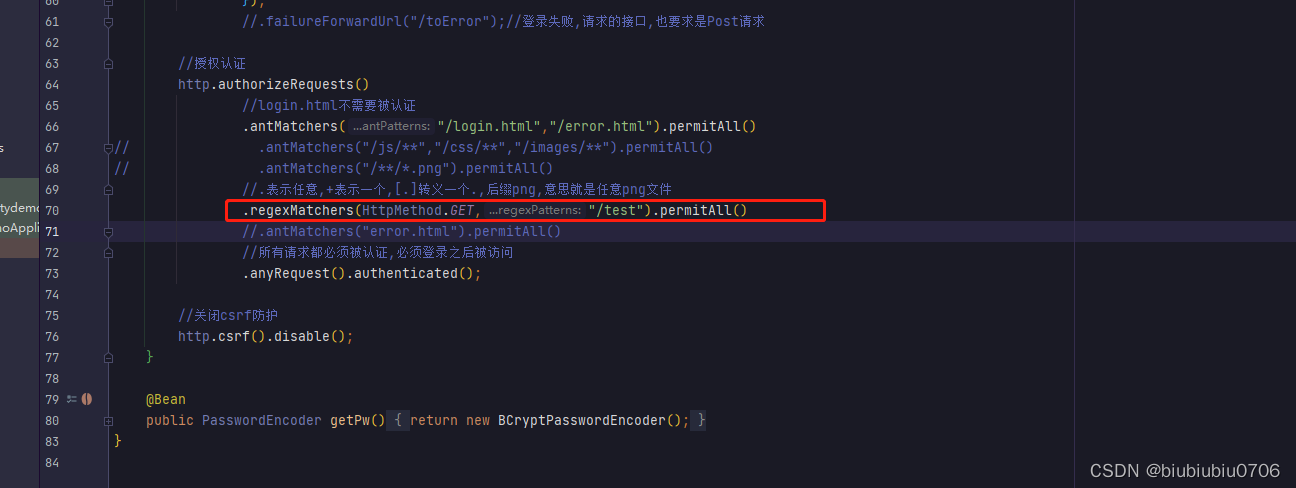 这里就用regexMathcers演示,antMathcers也一样的