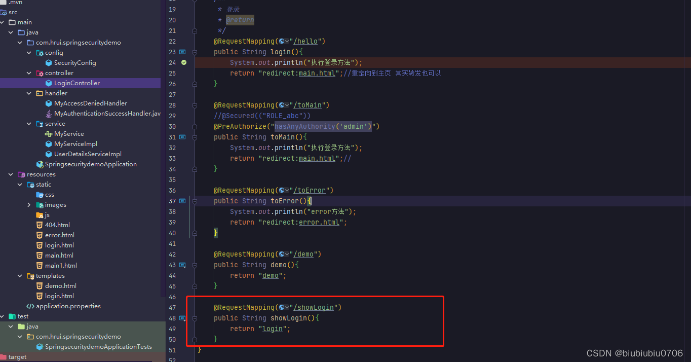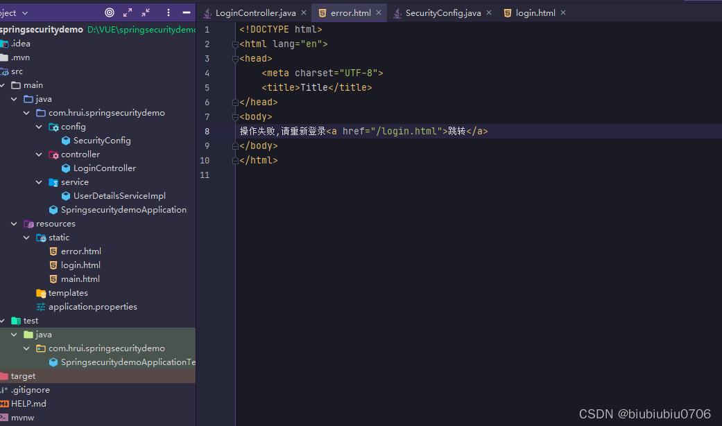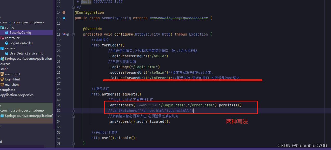 演示 先修改下配置类 就是所有都需要验证,只留登录页 error页面