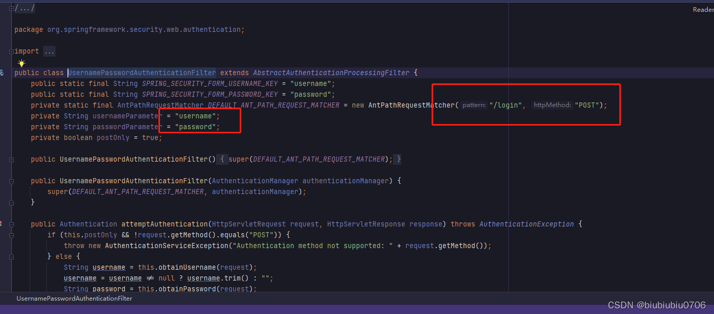 查看UsernamePasswordAuthenticationFilter