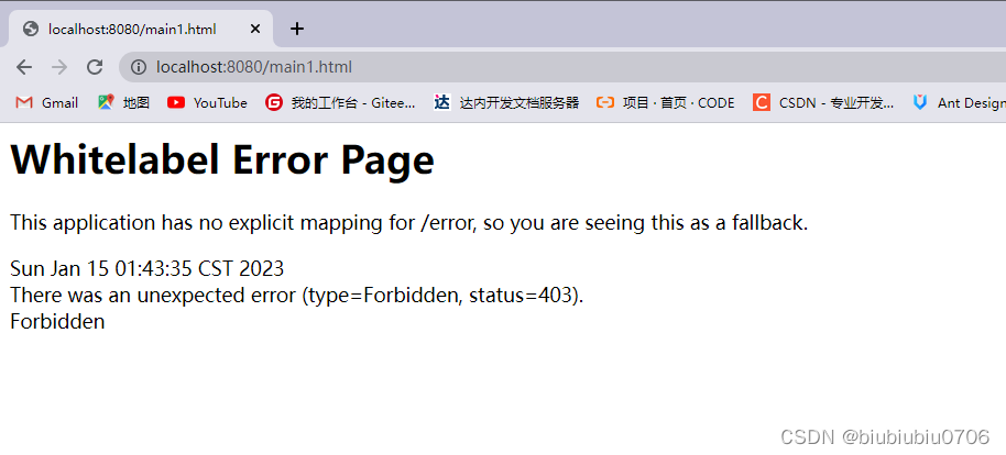那么都会跳转到403页面,但是浏览器的哪个页面也太丑了,体验好点就需要自定义了