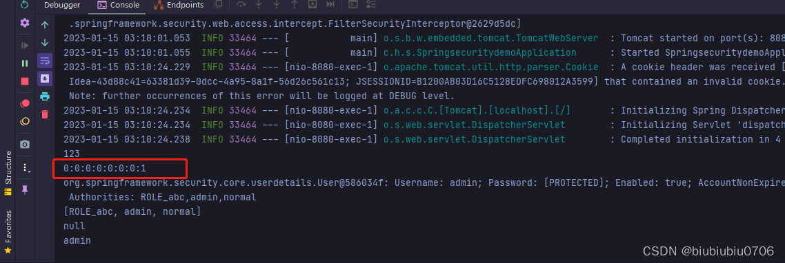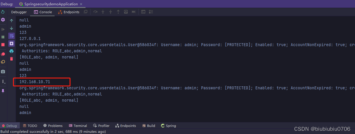 注意:password为null??????? 这是Spring Security考虑到安全原因输出为null