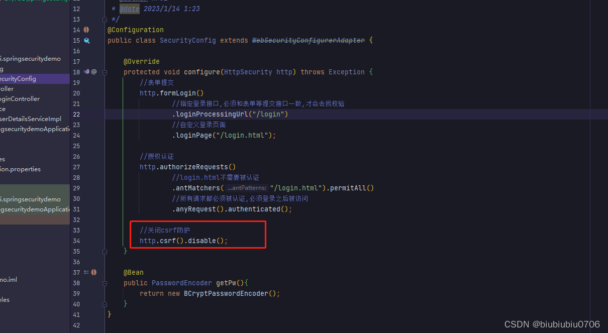 让原先定义的配置类 继承 WebSecurityConfigurerAdpter