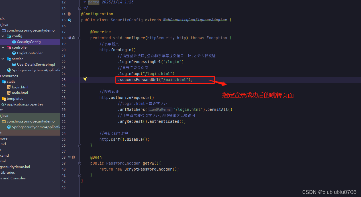 需要告诉Spring Security登录成功后跳转到哪个页面