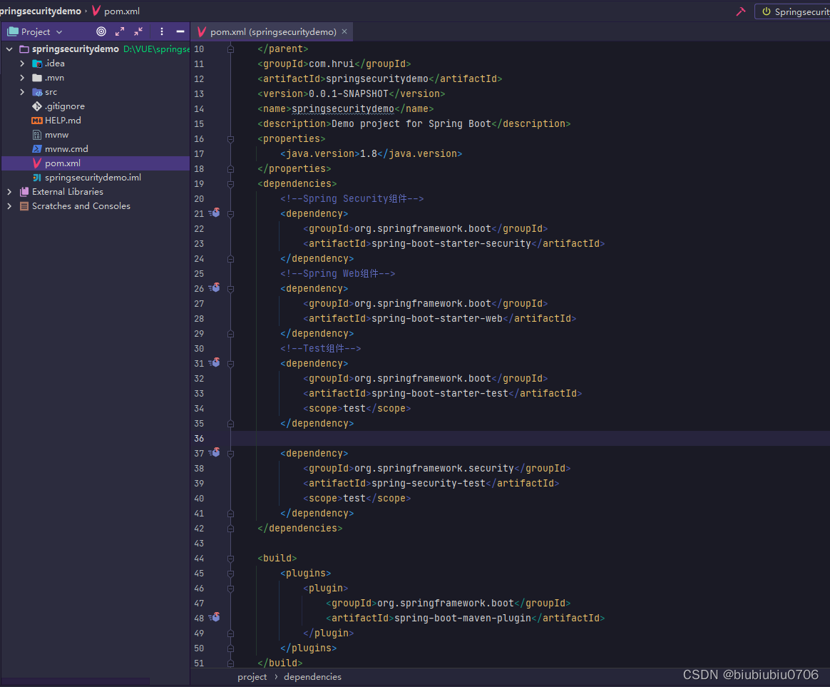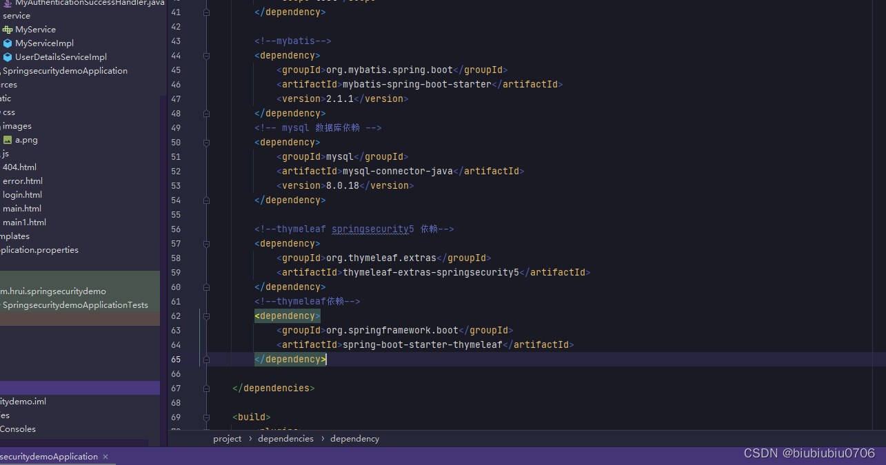 所以需要在项目中添加依赖,和Thmeleaf依赖