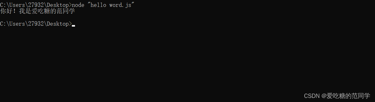 hello word.js 是我的JavaScript文件名,通过node指令对JavaScript的源文件进行解析执行。console.log 是在控制台进行类容的输出显示。当node解析到这条指令后,就会在命令窗口中进行内容的输出。