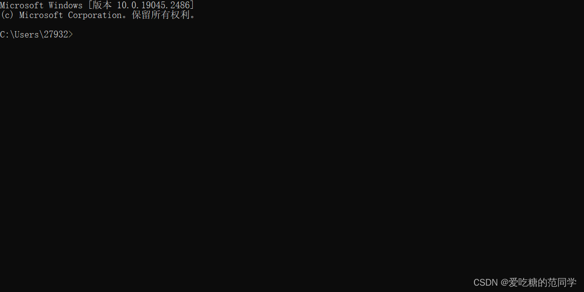 也可以使用快捷键方式打开,按住 Windows键(就是键盘上windows图标那个键) + R,系统会自动打开运行窗口,在输入框中输入 cmd,回车打开:
