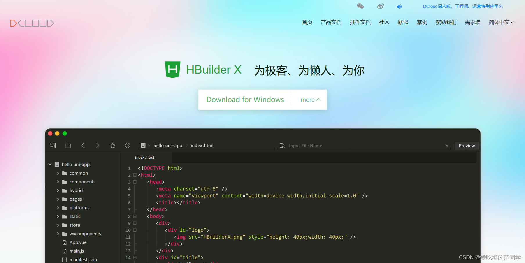 HBuilderX-高效极客技巧 (dcloud.io)https://www.dcloud.io/hbuilderx.html