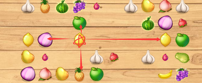 如上图,对于打星的柠檬,上面是青苹果,左边是洋葱,右边是柠檬,下面是菠萝,每个位置都维护这么一个信息。这是