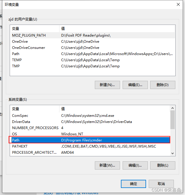 (5)将解压的cmder.exe所在文件路径添加到path中。