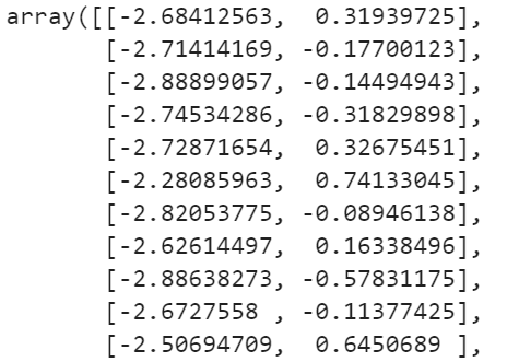 pca.explained_variance_ #查看方差是否从大到小排列,第一个最大,依次减小 array([4.22824171, 0.24267075])#属性explained_variance_ratio,查看降维后每个新特征向量所占的信息量占原始数据总信息量的百分比,又叫做可解释方差贡献率