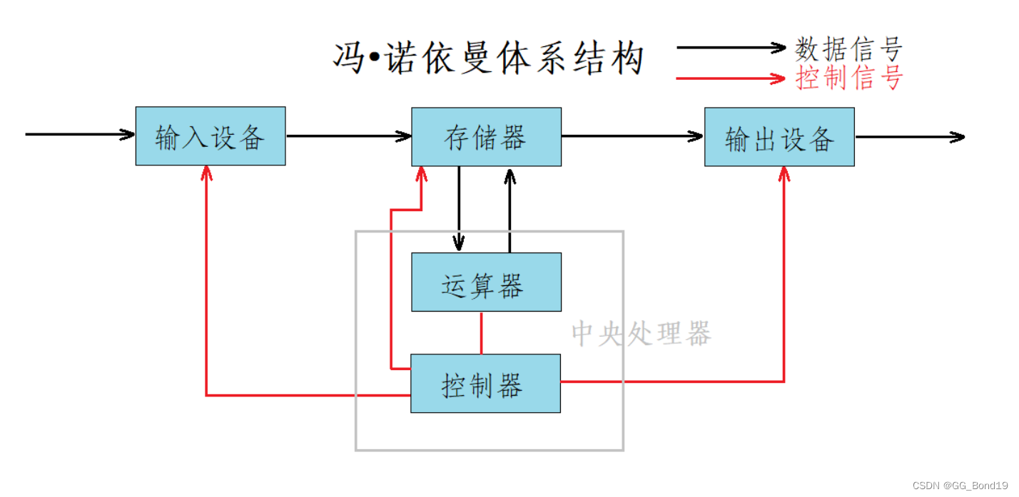 于是就不让输入设备和输出设备直接与CPU进行交互,而在这中间加入了内存,最终形成了冯 • 诺依曼体系结构。