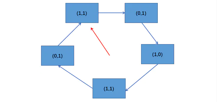 我们举个例子来描述一下电梯算法,比如各个柱面得到服务的顺序是 4,7,10,14,9,6,3,1 ,那么它的流程图如下