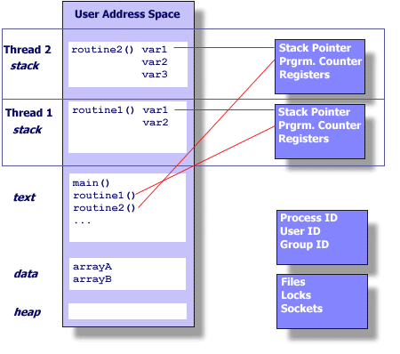线程共享的环境包括:进程代码段、进程的公有数据、进程打开的文件描述符、信号的处理器、进程的当前目录、进程用户 ID 与进程组 ID 等,利用这些共享的数据,线程很容易的实现相互之间的通讯。线程拥有这许多共性的同时,还拥有自己的个性,并以此实现并发性: