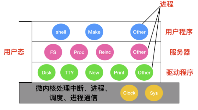 MINIX 3 是微内核的代表作,它的具体结构如下