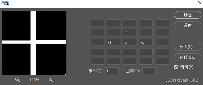 PhotoShop 支持我们自定义滤镜,其实就是自定义 kernel 矩阵