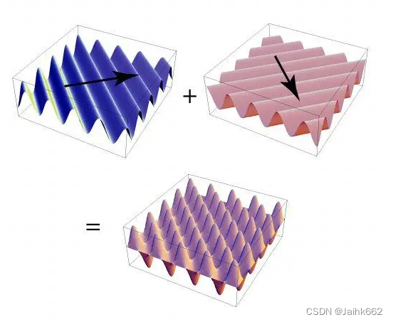 都可以分解为无数个不同频率、不同幅值的正、余弦信号的叠加,这个性质一样可以扩展到二维:即任意一个二维图像都可以分解为无数个复平面波